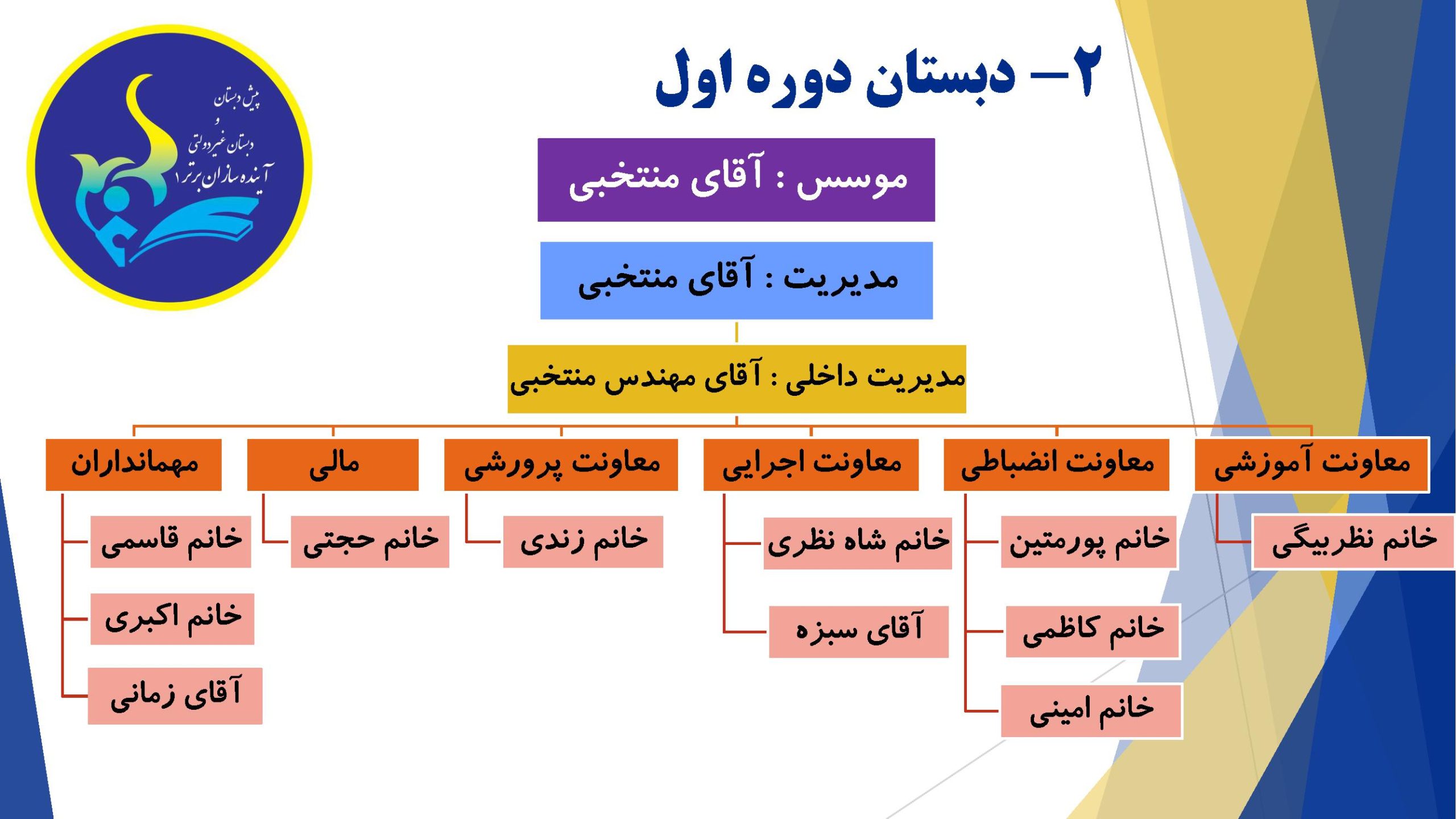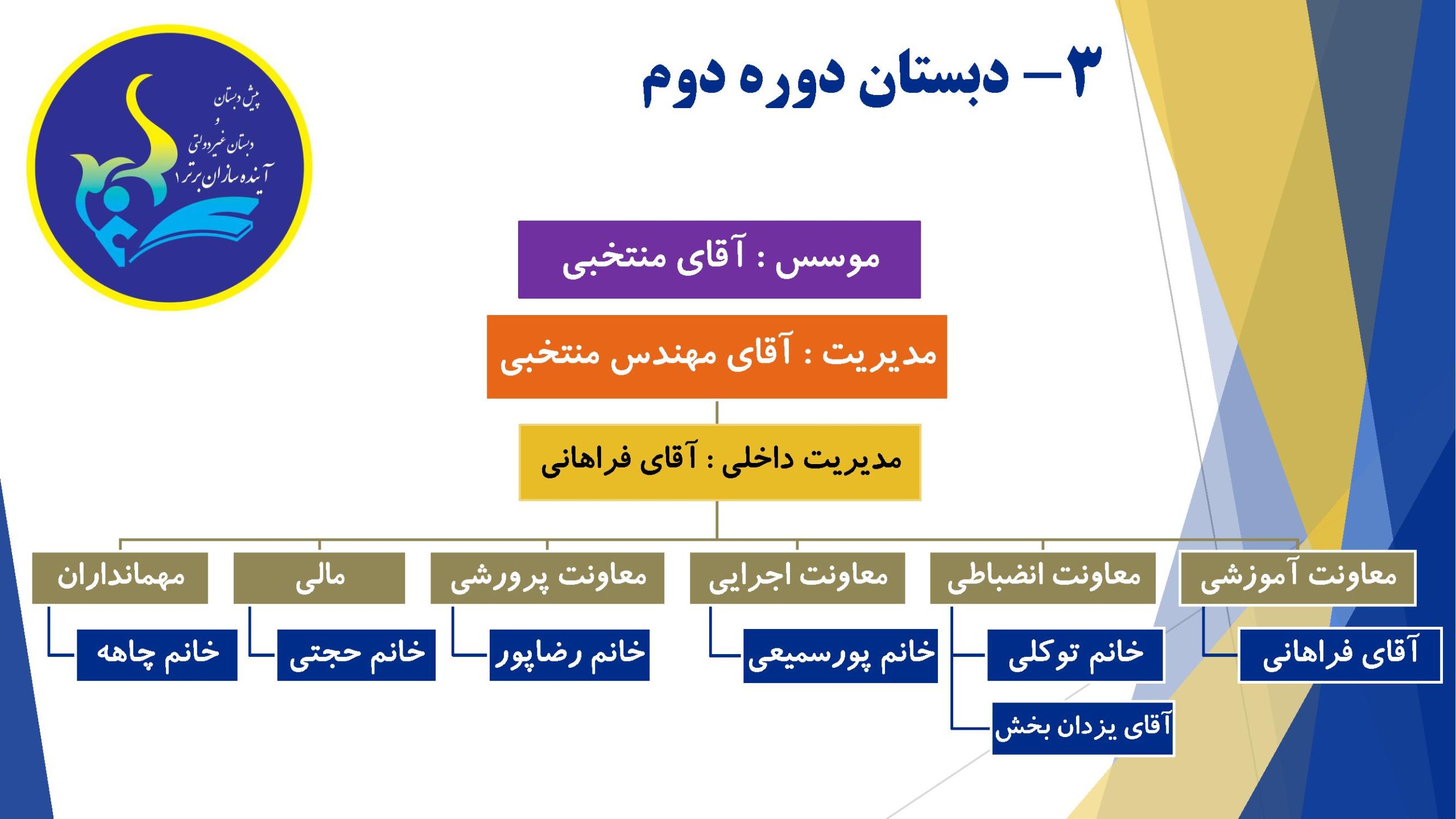 آدرس دبستان دوره دوم : خیابان بهارشمالی - کوچه بختیار- پلاک ۴۰
